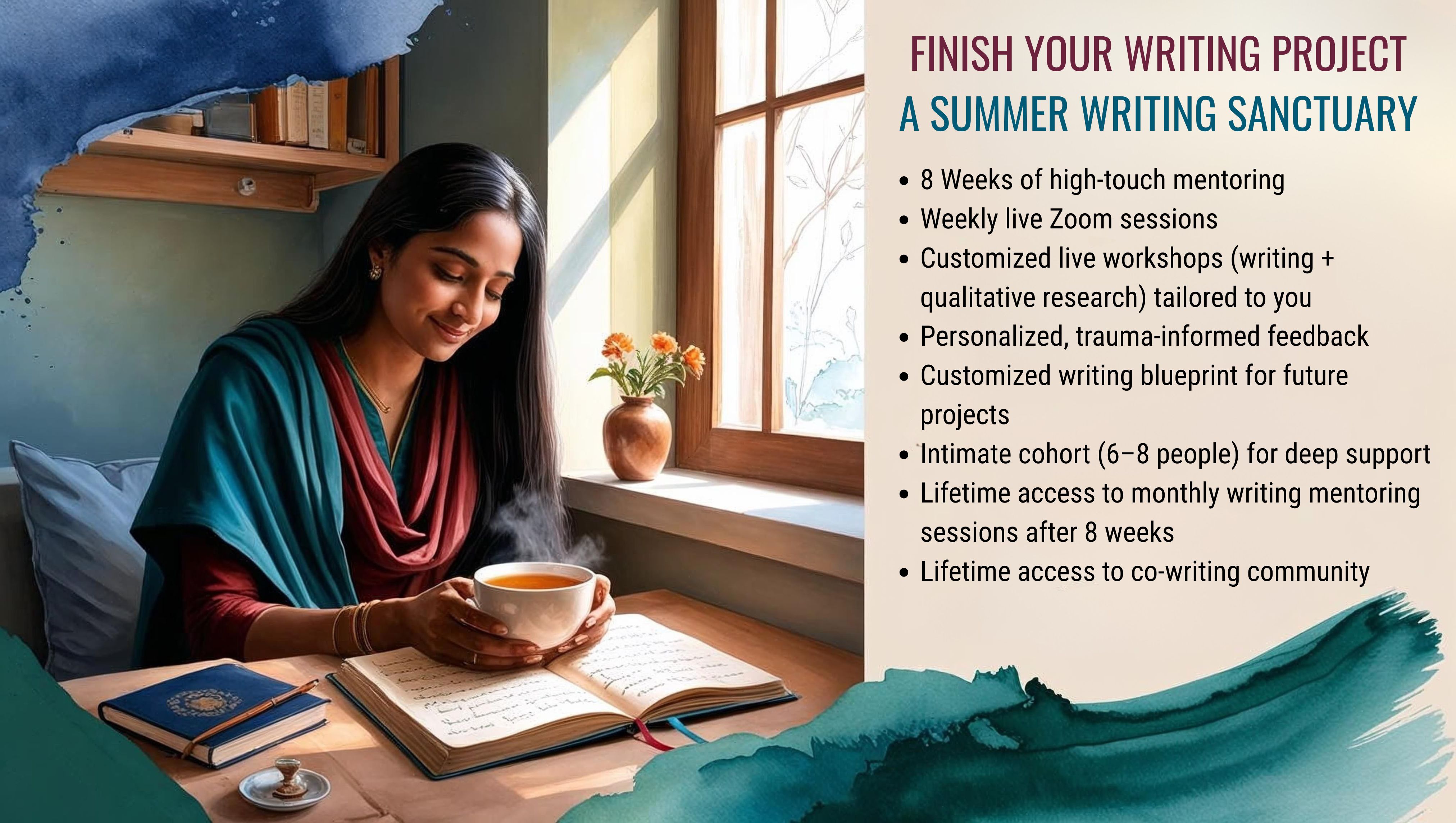Join award-winning researcher Dr. Kakali Bhattacharya for an immersive 90-minute workshop designed to transform your academic writing. Through her unique contemplative approach, Dr. Bhattacharya will guide you in turning research narratives from methodologically sound to deeply compelling. Perfect for faculty and graduate students who seek to elevate their narrative writing to new levels of insight and spacemaking.